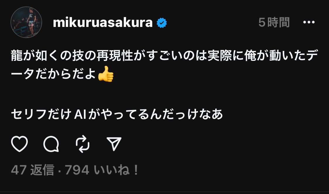 【悲報】朝倉未来さん、龍が如くの声優が棒読みだったと言われ効きすぎるwww