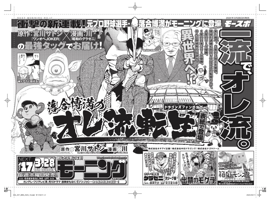 3度の三冠王に輝いた野球界のレジェンド・落合博満を描く新連載「落合博満のオレ流転生」が、3月28日発売のモーニング17号(講談社)でスタートする。