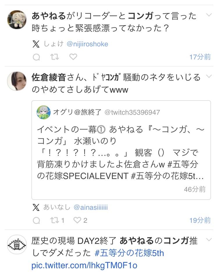 【悲報】声優・佐倉綾音さん、五等分イベントで「コンガ」を連呼してしまうw