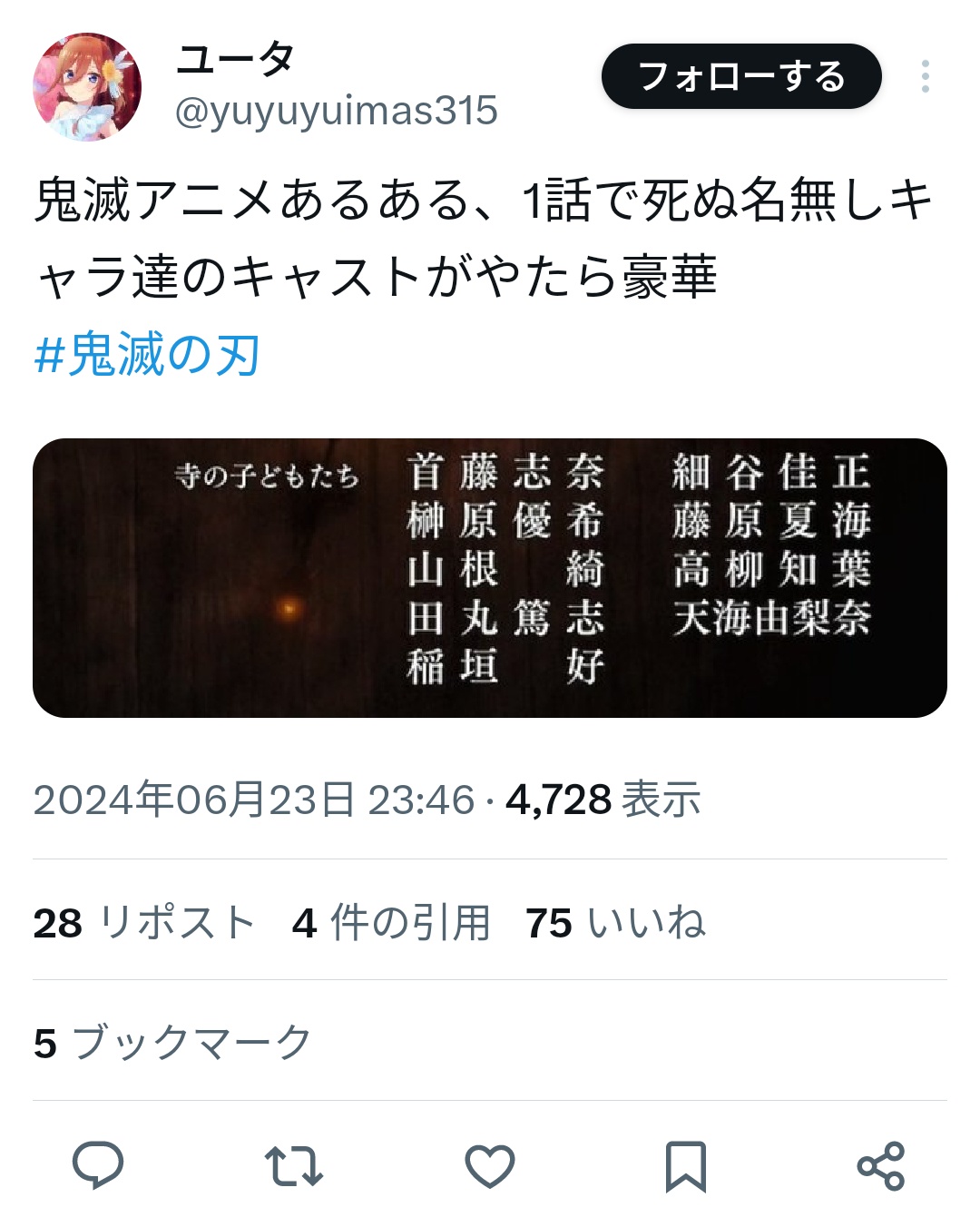 オタク「鬼滅のモブ声優って何故かめっちゃ豪華だよねwww」→マジでわからない