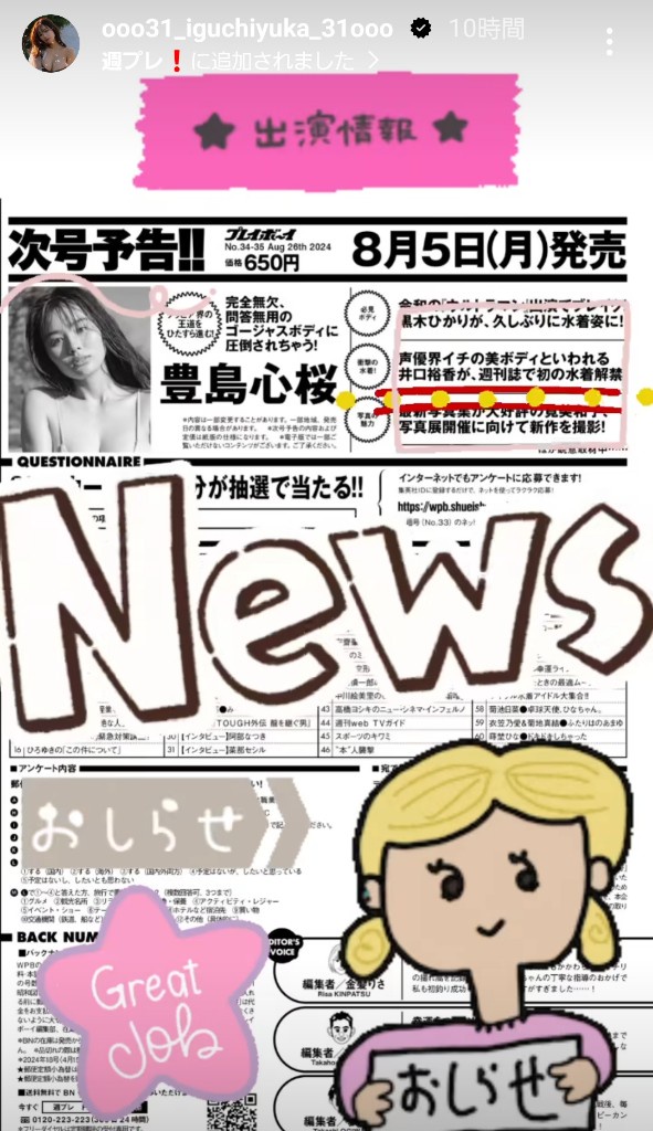 【朗報】声優の井口裕香さん、週刊プレイボーイに水着掲載wwww