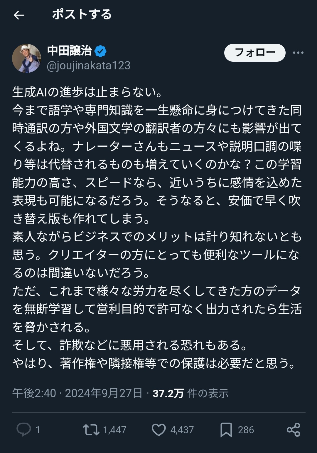声優・中田譲治さん、AIに戦々恐々
