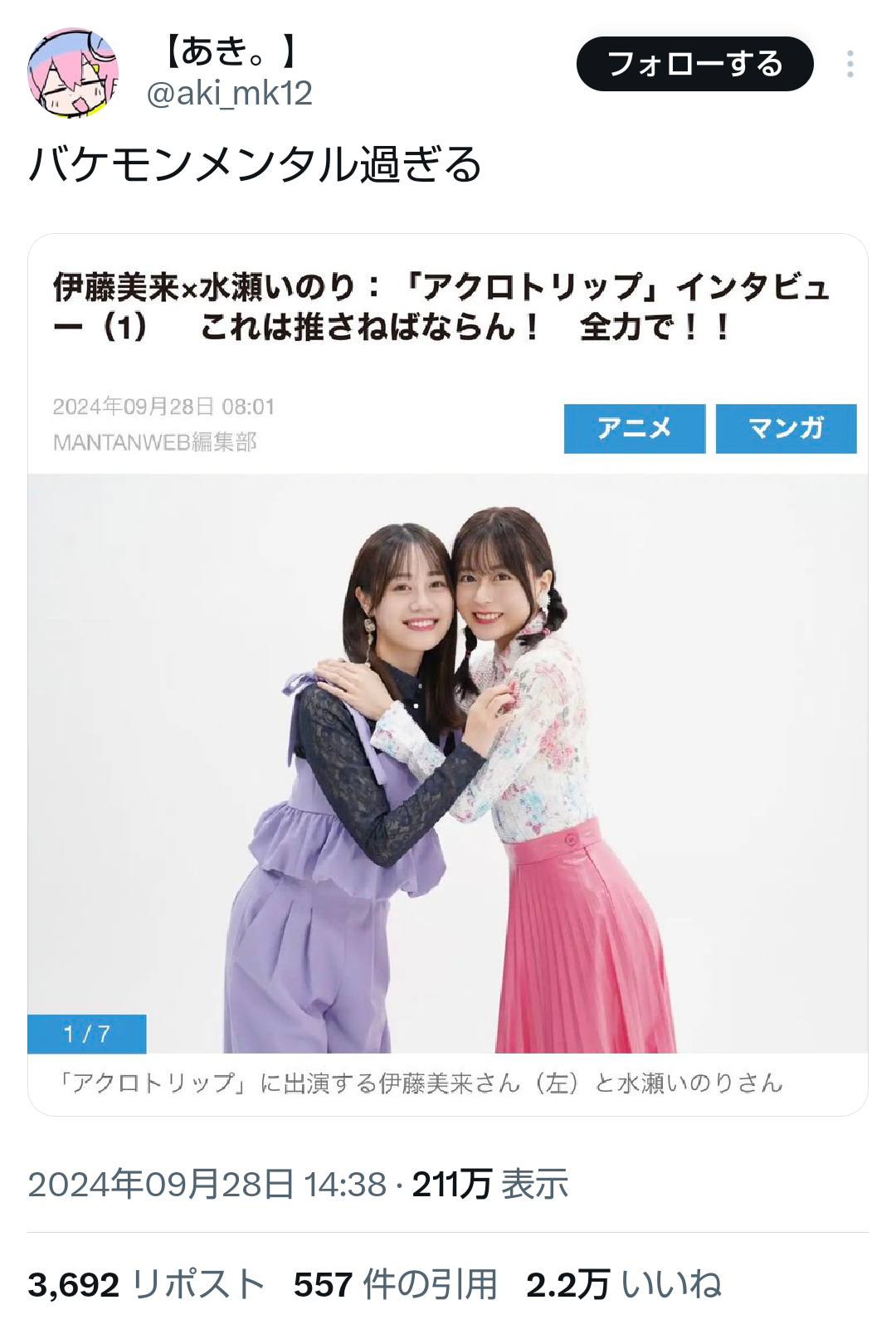 Juuuke(ジューク)では人気声優や女性声優のまとめをご覧いただけます。「【画像】声優・伊藤美来さんと水瀬いのりさんが頬を寄せ合う写真でオタクたちがなぜかザワつく…尊すぎるからか?」など、77,406件の「耳が幸せ」な声優・アニメ情報をあなたのすぐそばにお届けします。