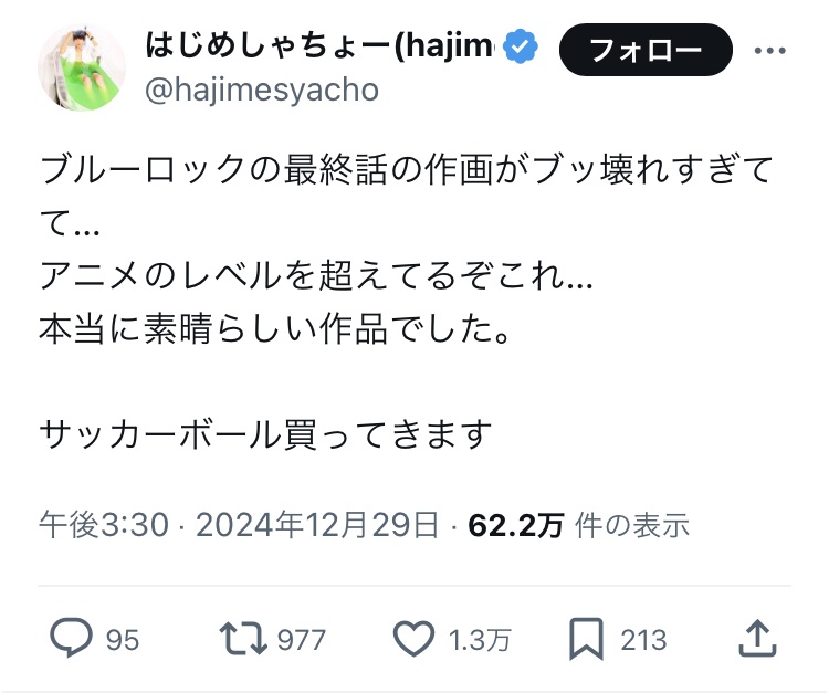 【朗報】ブルーロック2期最終話、サッカーアニメ史上最高の作画回だと絶賛の嵐www