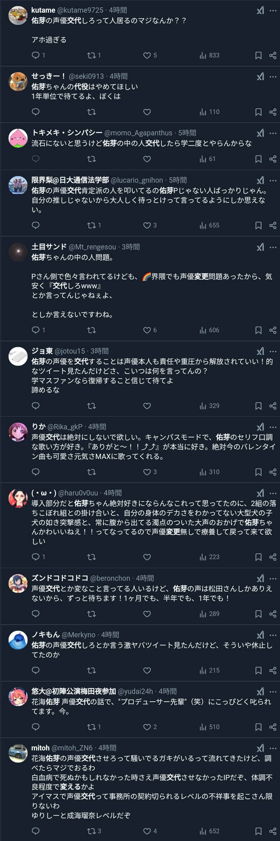 学マス界隈、休業中の声優を交代させるかどうかで荒れる・・・