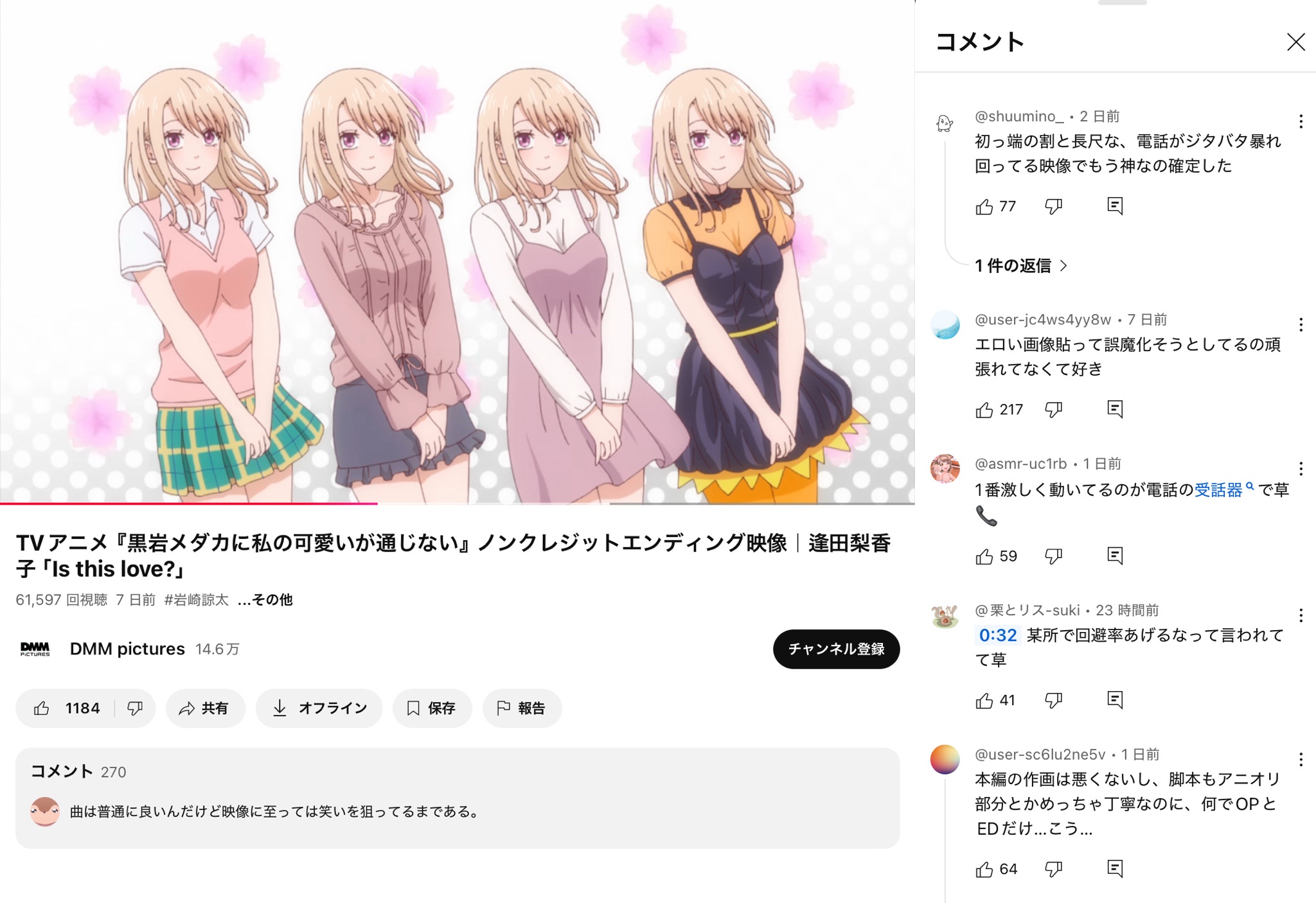 黒岩メダカの新ED、また作画を叩かれてしまう……
