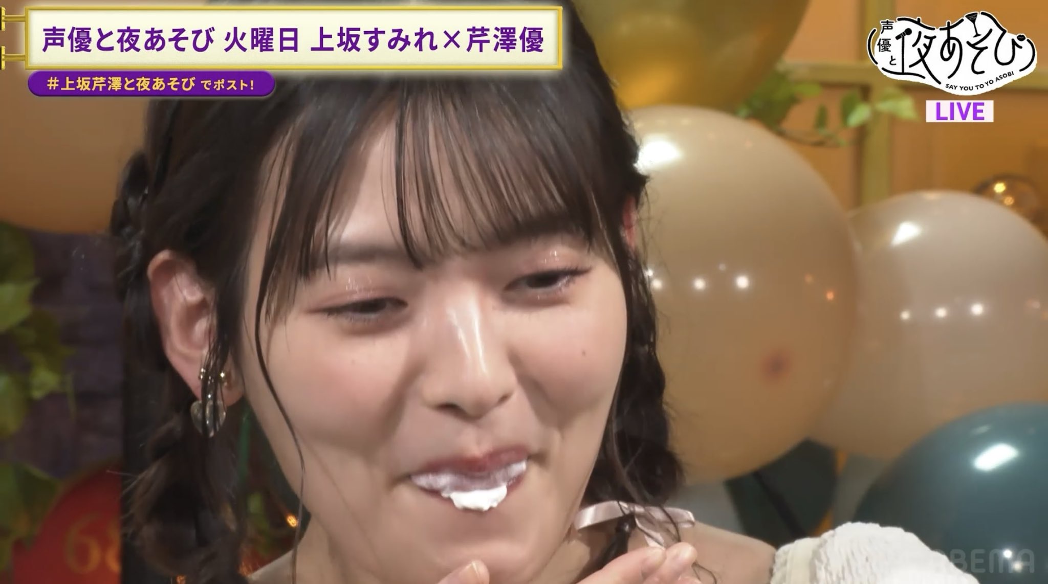 【画像】若手声優さん、口に限界までクリームを入れられる