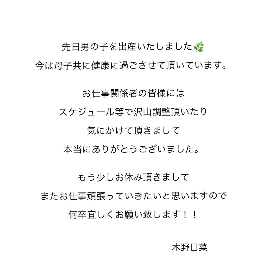 声優の木野日菜さん、出産