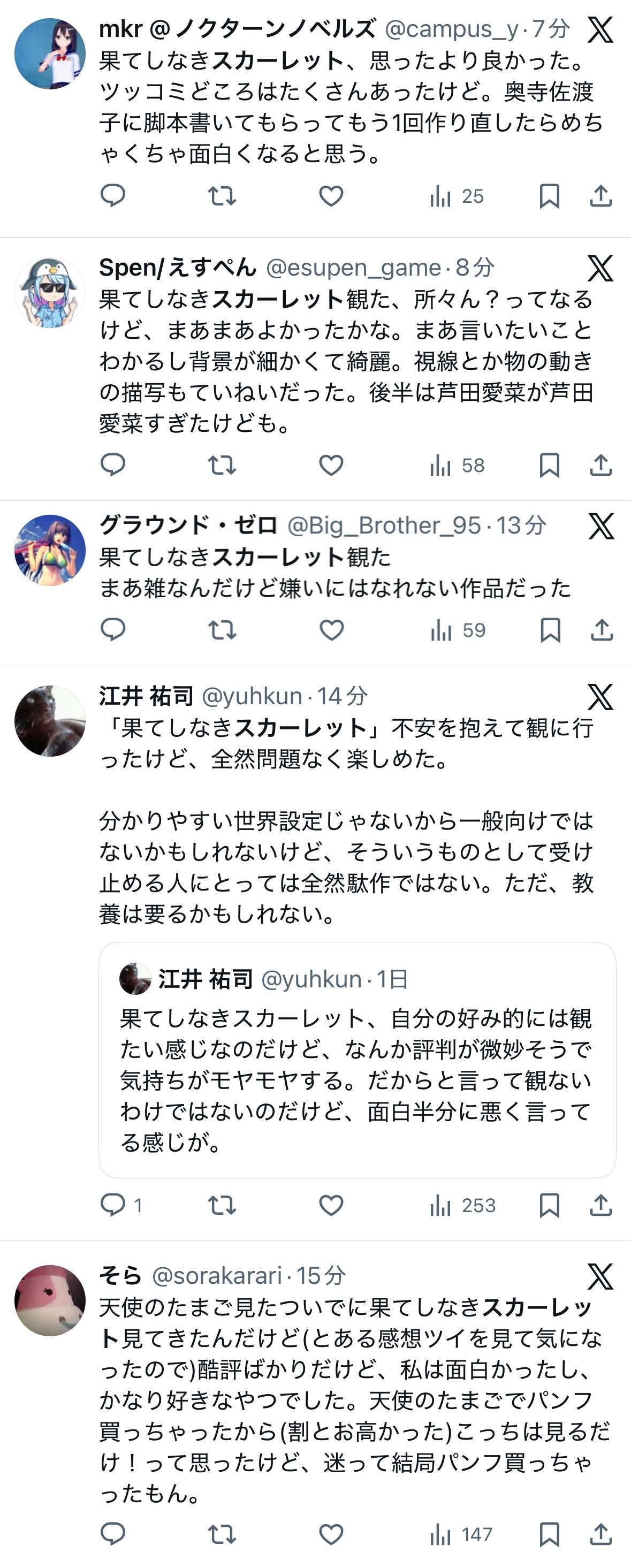 細田守の『果てしなきスカーレット』、前評判があまりにも悪過ぎて実際に観た人から「そこまで悪くなかった」という声が出始める