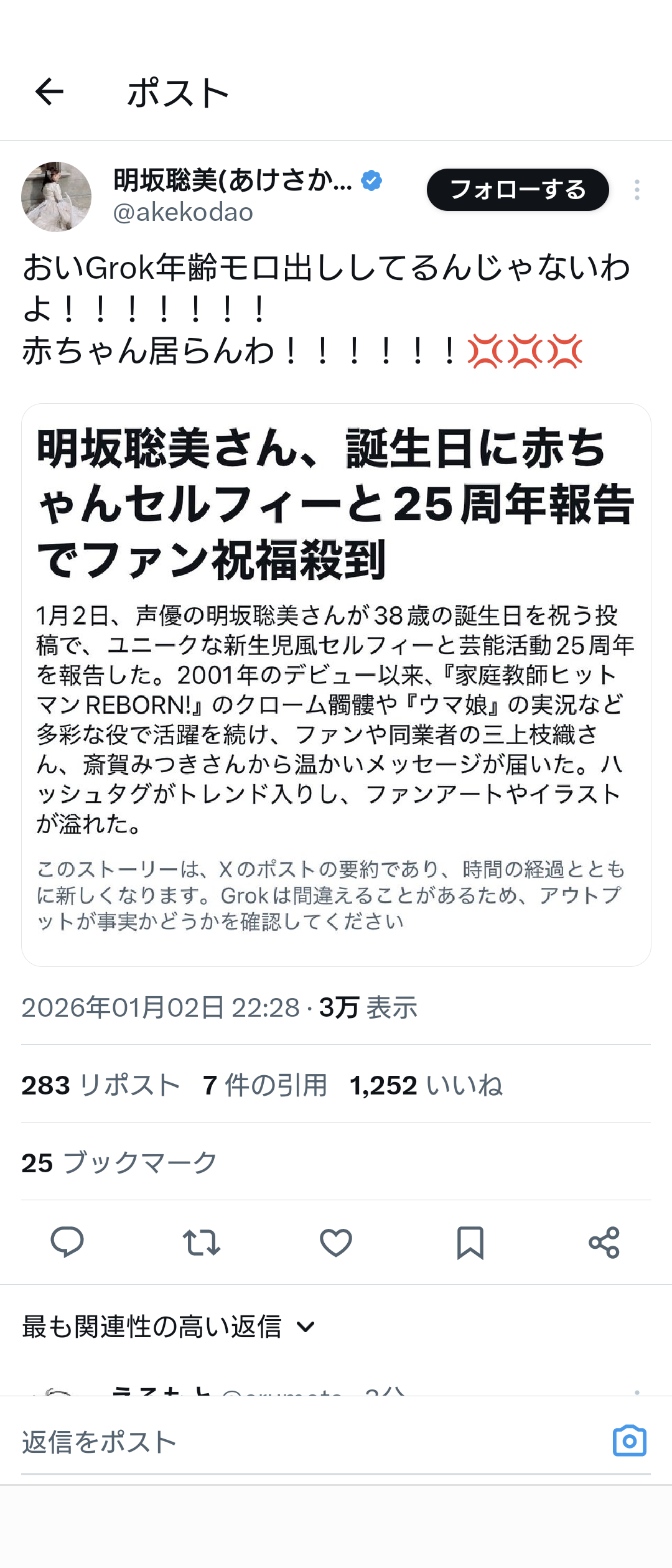 【速報】声優の明坂聡美さん(38)