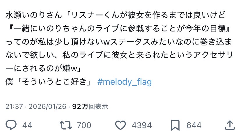 水瀬いのりちゃん「彼女作るのは良いけど一緒に私のライブに来るのが目標はやめてほしい。アクセサリーにされるのは嫌」