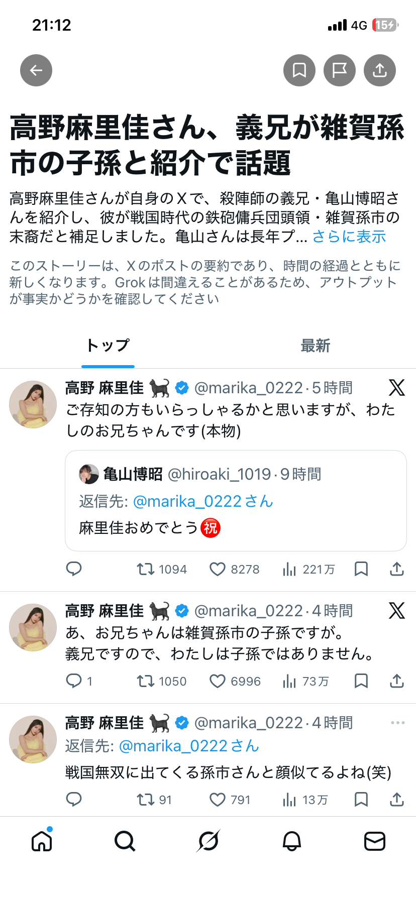 声優の高野麻里佳さん、兄が雑賀孫市の末裔だったwwww