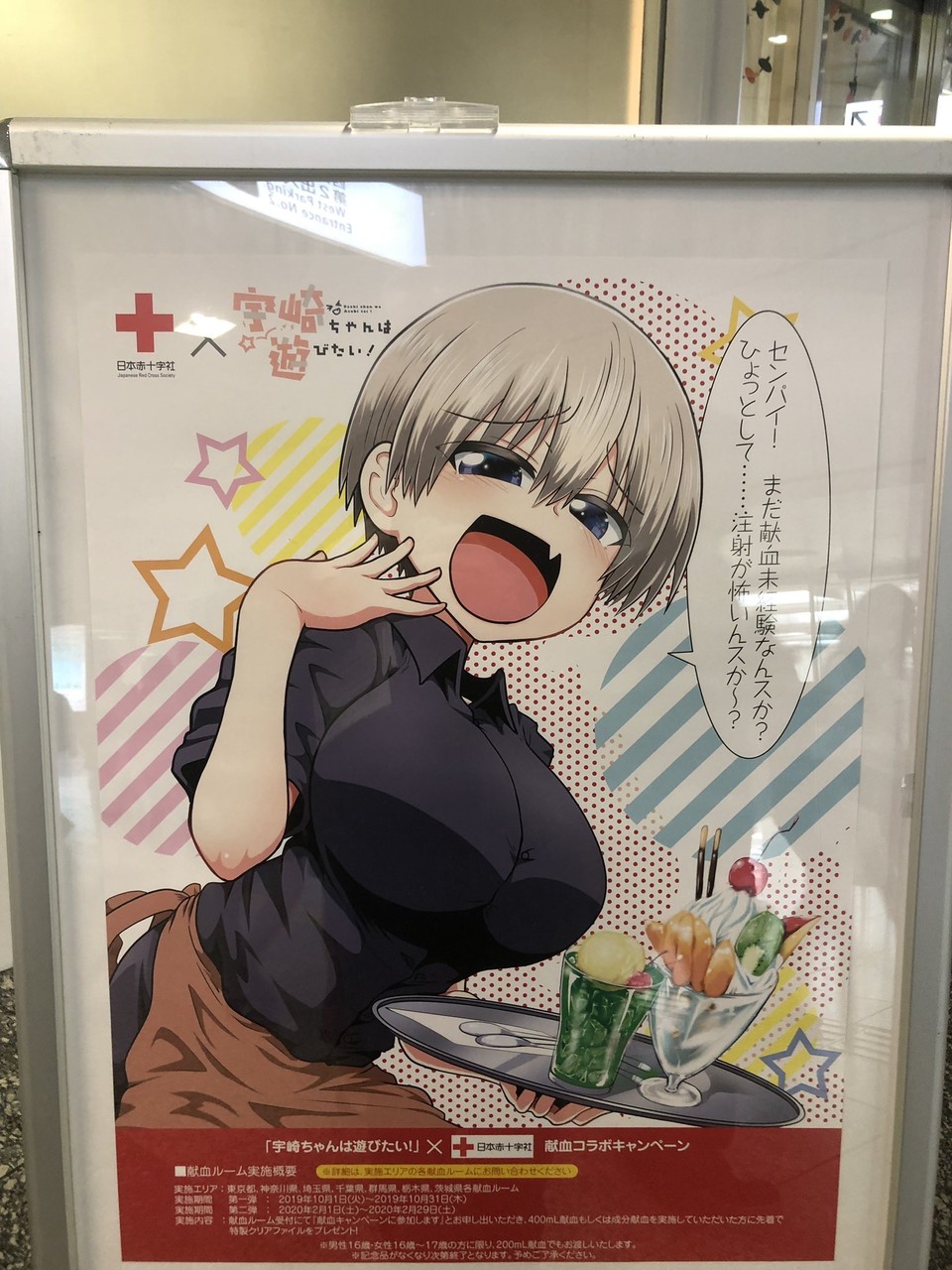 日本赤十字社 が「宇崎ちゃんは遊びたい」献血コラボキャンペーンということでこういうポスターを貼ってるようですが、本当に無神経だと思います。なんであえてこういうイラストなのか、もう麻痺してるんでしょうけど公共空間で環境型セクハラし… https://t.co/sk9RC7PxaK