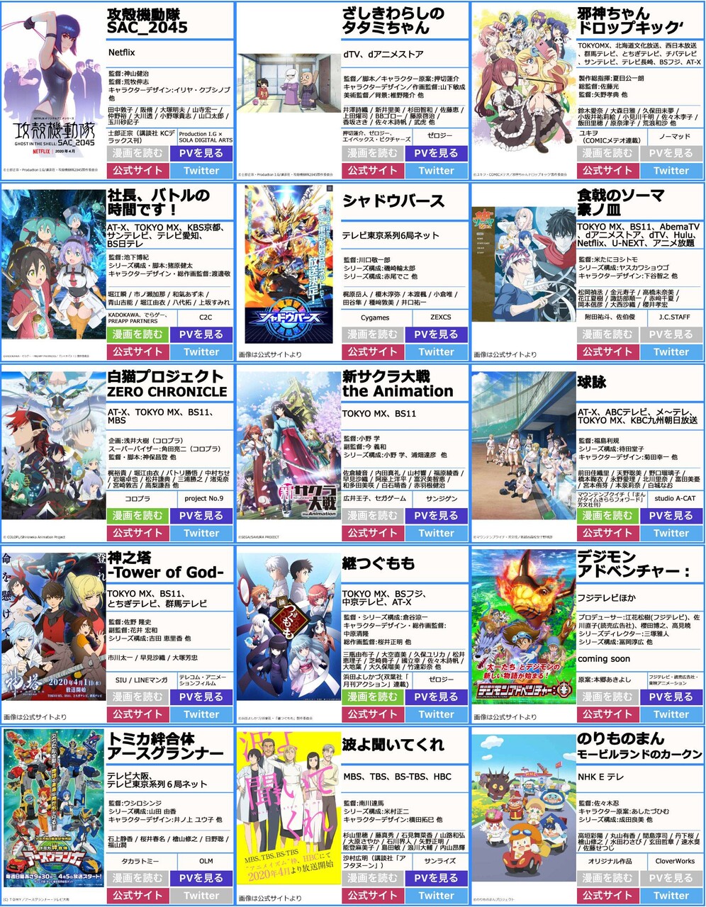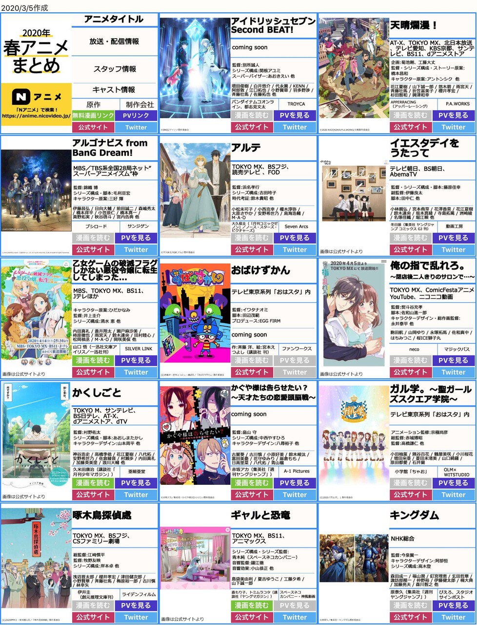 【画像】2020年春アニメ一覧www