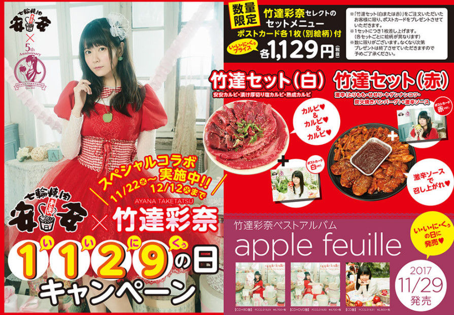声優の竹達彩奈さん、また焼肉屋とコラボしてるのかよwww