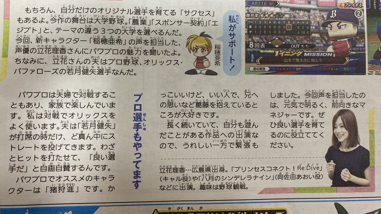 立花理香「夫婦でパワプロ対戦中に夫は『若月健矢』が打席の時だけ、ど真ん中にストレートを投げてきます」