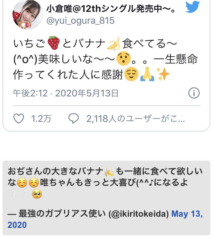 ワイ、小倉唯のTwitterにクソリプしまくってたイキりオタクの凍結に成功w