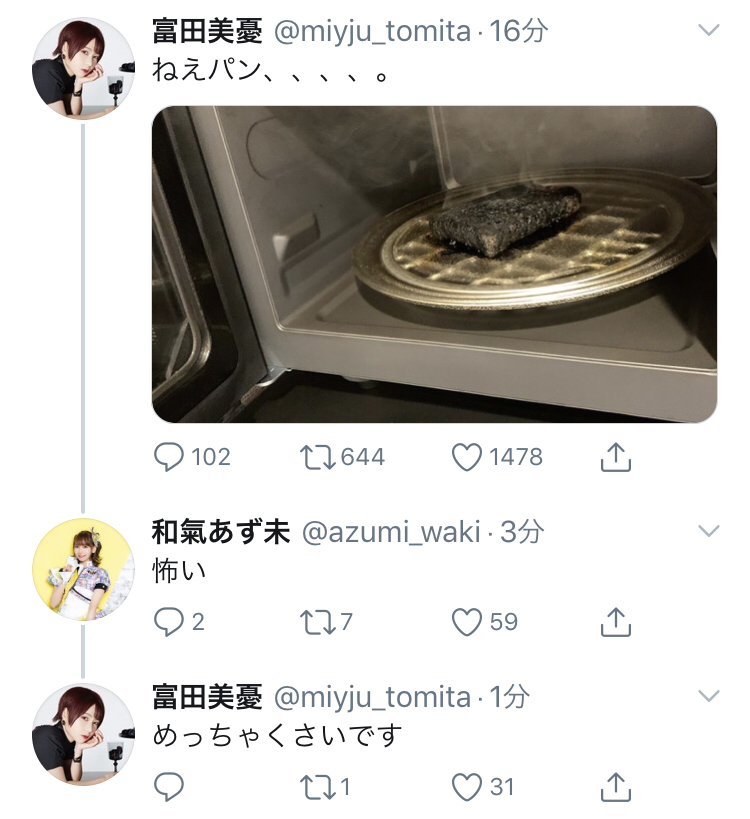 【画像】富田美憂さん、パンを焦がしてしまうwww
