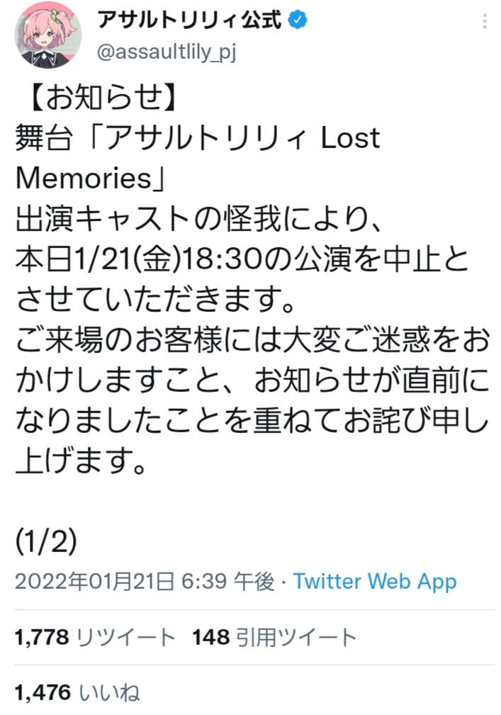 声優の紡木吏佐さん、アサルトリリィの舞台公演中に負傷・・・