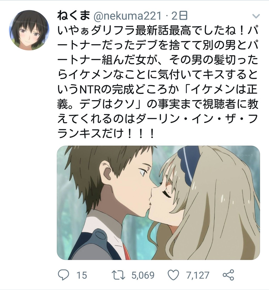 【悲報】アニオタさん、ダリフラを見て「デブはイケメンに勝てない」という事実を知る