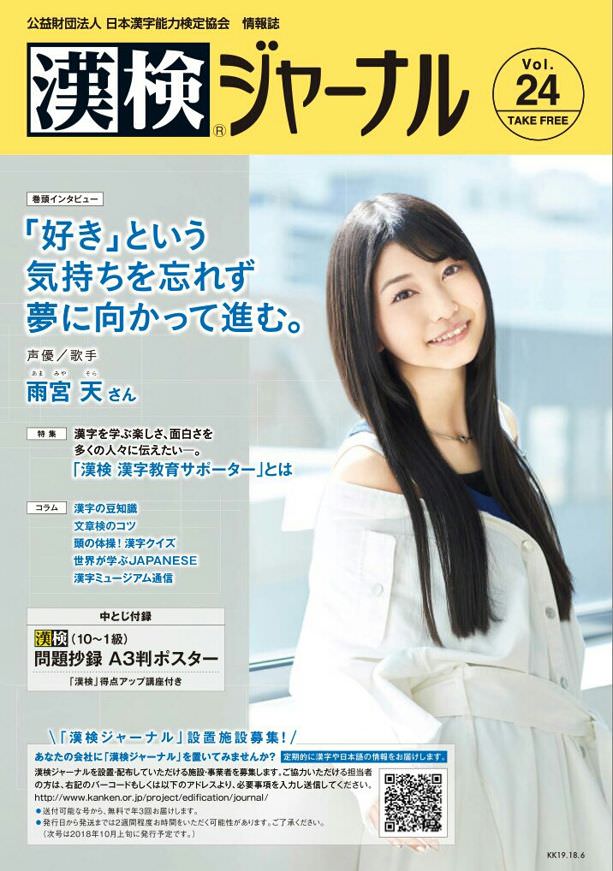 【画像】雨宮天さん、漢検ジャーナルの表紙を飾るwww