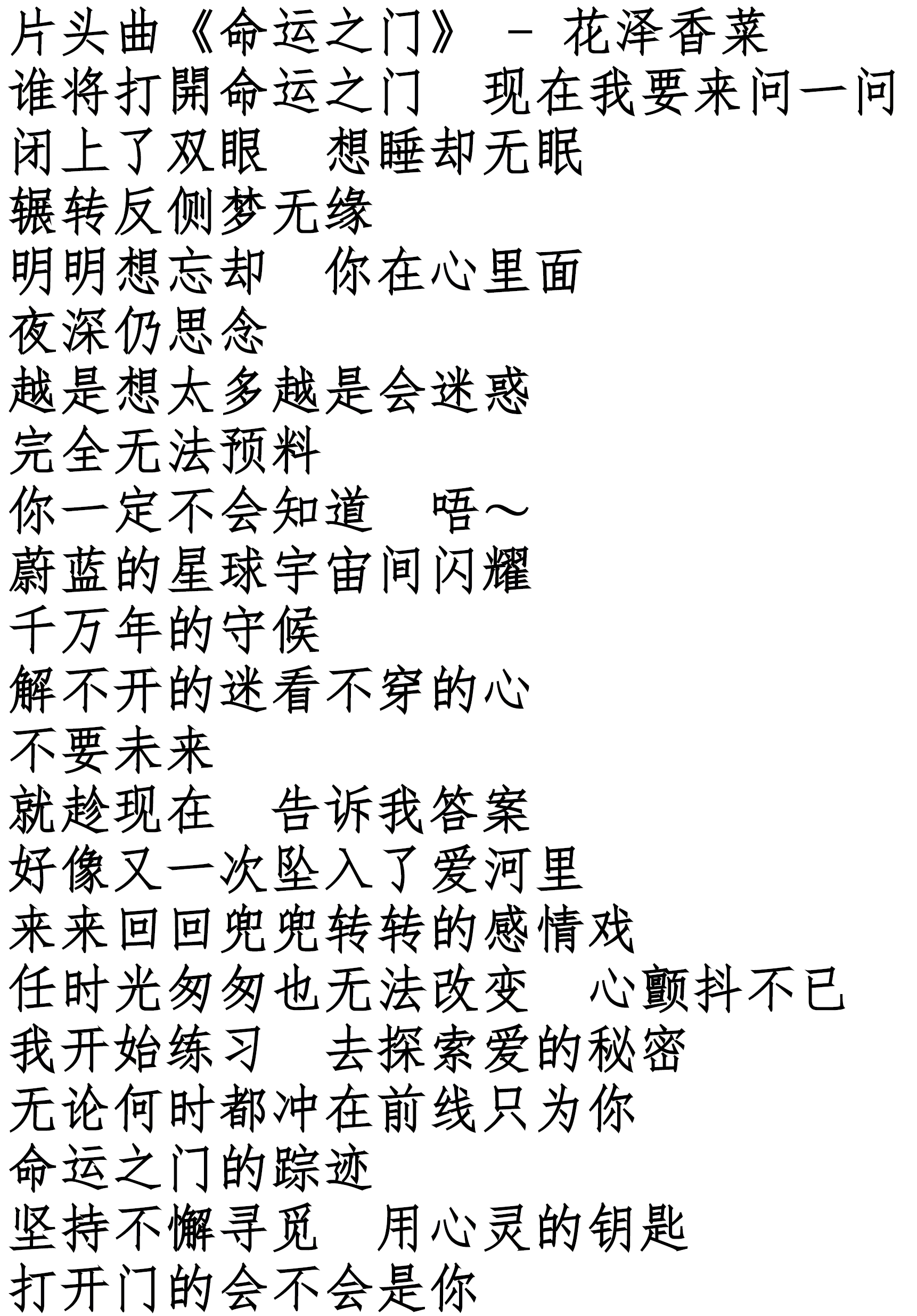 曲名:《命运之门》